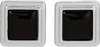 A vintage-inspired square stud earring featuring a sleek black enamel set within a gold-tone frame. Simple, elegant, and versatile—perfect for everyday wear or special occasions.