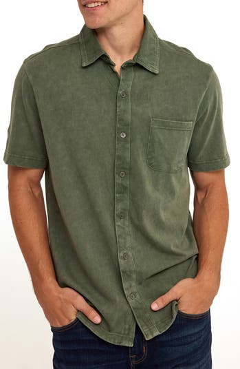 A midweight cotton jersey with a soft mineral wash brings relaxed comfort to a shirt styled with short sleeves and a curved hem that looks great left casually untucked. The spread collar keeps you looking smart on warm days, even when you don't have to.