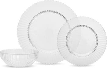 - Set includes four 10.6" dinner plates, four 8.5" dessert plates and four 6.2" cereal bowls