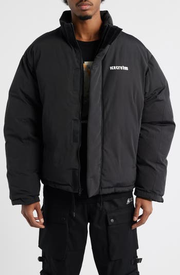 Logo embroidery brands the chest and back of this warm puffer jacket designed with a high neck and secure zip closure for cold-weather coverage.