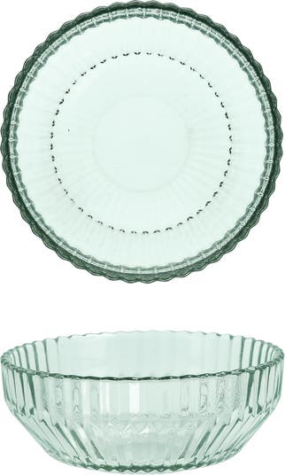 Molded facets inspired by Gothic architecture bring shimmer and distinction to a set of glass bowls perfect for serving snacks or enjoying cold cereals.