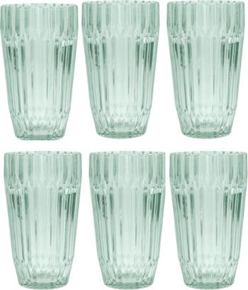 Molded facets inspired by Gothic architecture bring shimmer and distinction to a set of glasses perfect for sunny-day drinks and dinnertime beverages.