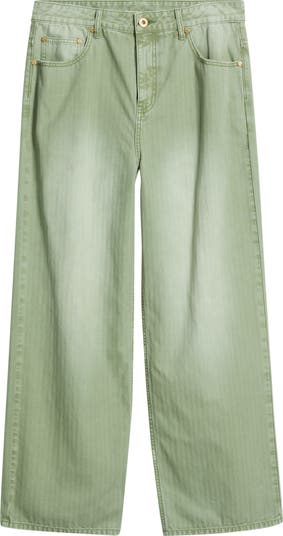 Sun-faded and easygoing, these herringbone twill pants bring a retro attitude with a roomy baggy fit. Finished with antiqued gold hardware, light grinding and subtly distressed edges, they wear like a favorite from day one.