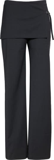 Clean lines and a brief skirt overlay tethered with a buckle strap give these straight-leg pants an understated yet statement-making appeal. The lightweight fabric enhanced with stretch is woven from recycled polyester and wool sourced from sheep raised under mulesing-free practices.