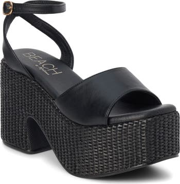 A woven platform sole plays up the retro-chic appeal of this ankle-strap sandal that's a standout weekend style.