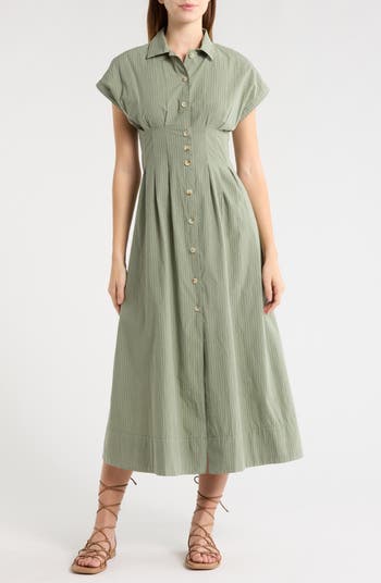 Effortlessly chic and timeless, this midi shirtdress features pintucks in front and smocking in back to define your waist and create a fit-and-flare silhouette. The supersoft Cali Poplin fabric is woven with long-staple pima cotton, making it naturally pill-resistant and less prone to wrinkling than classic poplin.