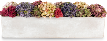 The Arden Oblong Sedum Arrangement features a soft, curated blend of lifelike sedum in varying tones, artfully arranged in a long rectangular vase. Its sleek silhouette makes it the ideal centerpiece for dining tables, consoles, or kitchen islands—bringing natural beauty and effortless elegance to any space. A lasting luxury, timeless and unrivaled.