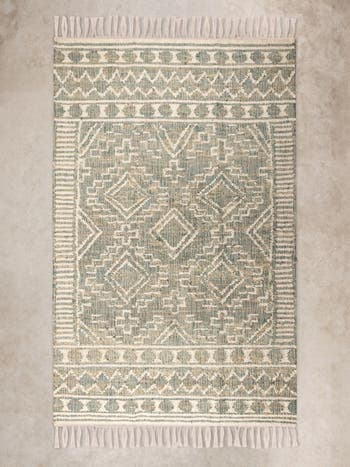 The Ardmore Area Rug beautifully showcases the artistry of skilled artisans, with every thread reflecting their passion and dedication. Handcrafted from sustainably sourced cotton in India, this stunning piece features intricate geometric designs that effortlessly blend traditional craftsmanship with contemporary flair. With its muted color palette, the central medallion takes center stage, showcasing the exquisite detail shaped by hand. Elevate your interior with this exclusive rug, where comfort intertwines with the unparalleled artistry of the weaver's wool craft, transforming your space into a sanctuary of style and elegance.