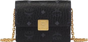 Visetos monogram canvas chain wallet with logo brass plate closure and natural leather trim