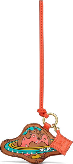 Monogram printed nylon planet charm with metal stud hardware and calfskin leather trim