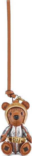 Visetos monogram canvas Bear charm with natural leather trim and logo-engraved spring clasp