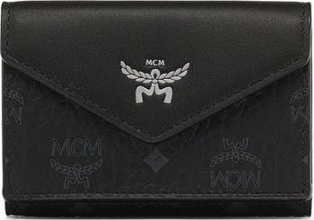 MCM Aren Trifold Wallet in Visetos, Main, color, Black