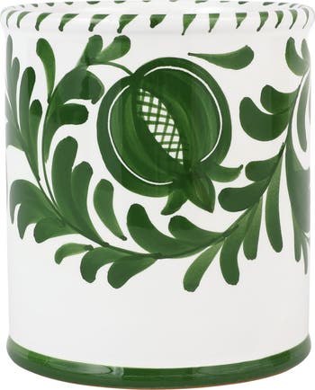 Set a warm, welcoming table with the bold pattern and rich glaze of this utensil holder that nods to the centuries-old tradition of Majolica from the Italian Renaissance.