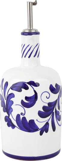 With bold patterns and splashy colors that harken back to the centuries-old tradition of Majolica, this olive oil bottle makes a fresh statement next to the stove or at the table.