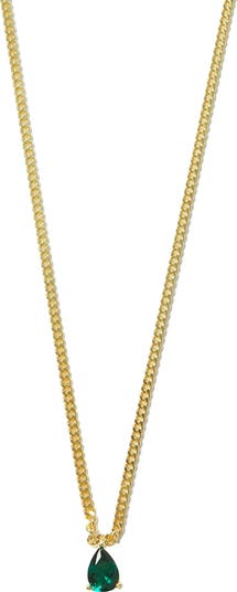 A green cubic zirconia lends a playful pop of color to this sterling silver curb-chain necklace plated in 14-karat gold.
