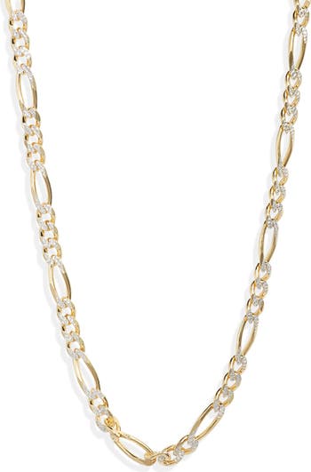 Glistening diamond-cut links comprise an Italian figaro-chain necklace crafted from sterling silver with a glossy 14-karat gold-plated finish.