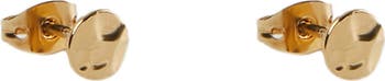A hammered design brings light-reflecting shine to these dainty sterling silver stud earrings plated in warm 18-karat gold.