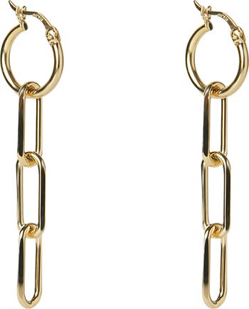 A cascading trio of paper-clip links enchants these sterling silver linear earrings in radiant 18-karat-gold plate.