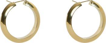A sleek knife-edge design sharpens the silhouette of these elegant sterling silver hoops with a polished goldtone finish.