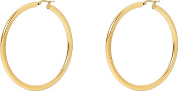 Minimalist design showcases the sleek curves of these large tubular hoop earrings crafted from sterling silver and plated in polished 14-karat gold.
