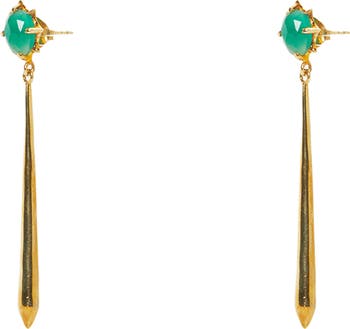 Faceted stones top these sterling silver drop earrings plated in sunny 14-karat gold and anchored by elongated charms.