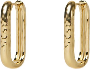 An organic texture lends natural dimension to these sterling-silver oblong hoop earrings plated in warm 18-karat gold.
