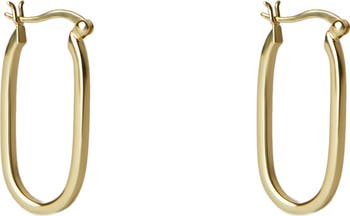 Sterling silver oval hoop earrings in a perfect-for-everyday size offer elegant shine with 14-karat-gold plate.