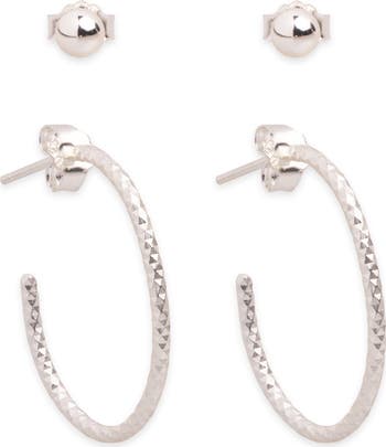 Set of 2 Ball Stud & Textured Hoop Earrings