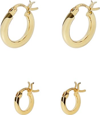 Switch up your looks with these two pairs of hoop earrings both fashioned from sterling silver and plated in 14-karat gold.