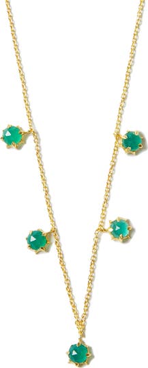 Shaky green onyx charms lend natural movement and vibrant color to this sterling silver chain necklace plated in gleaming 14-karat gold.
