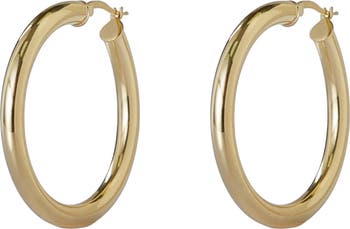 Refresh your hoop collection with this tubular pair crafted from sterling silver and plated in polished 18-karat gold.
