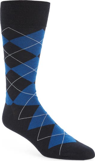 A charming argyle pattern adds a pop of color to stylish socks knit from a soft, stretchy cotton blend.