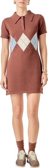 English Factory Argyle Knit Polo Dress, Main, color, Brown Multi