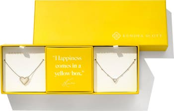 Original and mini-sized versions of the label's heart pendant anchor a boxed pair of necklaces that look oh-so-cute layered together or worn individually.