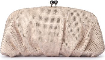 Sparkling crystals and a luxe satin exterior add contemporary elegance to a soirée-ready clutch fitted with an optional chain strap for hands-free carry.