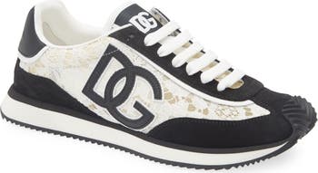 Aesthetics collide on a suede-framed sneaker that's unexpectedly updated with delicate floral lace and finished with a classic interlocking logo at the sidewall.