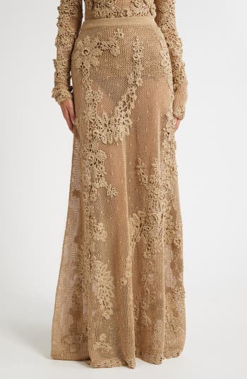 Aria Metallic Crochet Appliqué Open Stitch Maxi Skirt