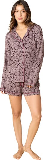 A classic bedtime essential with a touch of the wild side — the Aria Notch Collar Capri PJ Set. Designed with a feminine notch collar and full button-front top, this soft and stylish set is made from a luxe modal-spandex blend that feels buttery-smooth against your skin. The capri-length pants feature side pockets and a flattering fit, making them just as perfect for slow mornings as they are for restful nights. With playful prints and a breathable, cooling feel, this set brings together comfort, stretch, and everyday charm.