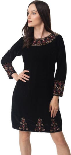 The Arial Black Velvet Mini Dress pays tribute to artisanal craftsmanship with its intricate hand embroidery. Crafted from luxurious black velvet, this mini dress features meticulously detailed hand embroidery with resham, kasab, & cutdana work, showcasing timeless artistry and impeccable design. Perfect for evening events or special occasions, this black velvet mini dress effortlessly blends sophistication with a touch of modern allure.