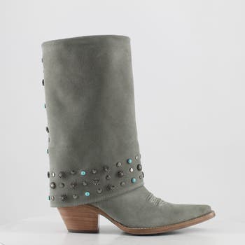 Turn heads in this suede old gold boot featuring studded floral accents and turquoise detailing. A modern western twist on a timeless silhouette — perfect for day-to-night styling.