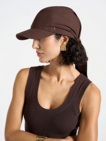 This unique headwear piece is where classic utility meets contemporary elegance. Designed with a soft draping silhouette and an extended neck tie, it offers both coverage and a sculptural twist on traditional styles. The built-in cap provides structure and sun protection, while the scarf-like wrap lends fluidity and style. Crafted from high-quality linen fabric it’s ideal for elevating any outfit.