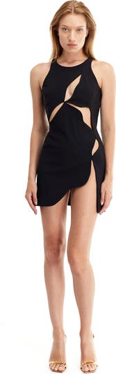 Get ready to turn heads in this jaw dropping piece. Featuring front cut-outs and a wave side slit, this dress is designed to showcase your confident and daring attitude. Plus, with double lining and a hidden back zipper closure, this dress will effortlessly sculpt your figure. Go ahead and make a statement in this bold and adventurous mini dress.