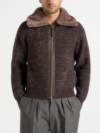 Ariel Unisex Plush Collar Speckled Knit Jacket