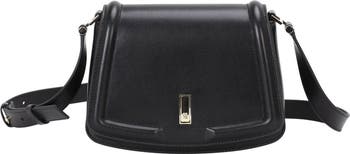 Gleaming logo hardware stands out against the smooth, polished leather of this structured saddle bag fitted with an adjustable strap for versatile wear.