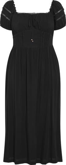 Lacy trim at the bodice plays up the vintage-chic vibes of this light and airy maxi dress.