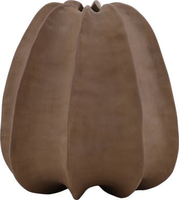 Crafted from terracotta, the Arden Vase features a softly sculpted, ribbed silhouette finished in a warm Light Brown tone that highlights its organic form. Subtle variations in color and surface texture are inherent to the material, ensuring each piece is uniquely its own. Designed for indoor display, this decorative vase does not include a drainage hole and should be used for decorative purposes only.