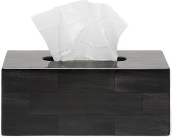 Handcrafted from dark faux horn, this tissue box cover makes a handsome, functional addition to your vanity.