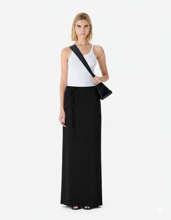 The Arline Wrap Maxi Skirt elevates a timeless silhouette with the structured elegance of premium suiting fabric, offering a polished, architectural drape that transitions effortlessly from professional settings to evening soirées.