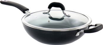 The Kenmore Arlington 11 Inch Nonstick Aluminum Wok in Black Diamond provides quality with exceptional style, durability and versatility. Heavy gauge aluminum construction provides fast, even heating and outstanding performance day after day. The ceramic nonstick cooking surface delivers extraordinary taste for dependable cooking results without added fats and oils. Wow guests with a stunning array of dishes, from sauted veggies to seared meats.