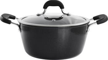 The Kenmore Arlington 4.5 Quart Dutch Oven with Lid is constructed with a heavy gauge forged aluminum body that is coated with a ceramic for convenient nonstick use. This dutch oven features soft touch handles that stay cool while you cook, keeping your hands safe and making it easy to move from burner to burner. Glass lid allows for safe monitoring without interrupting the cooking process. Compatible with gas, electric, induction, vitroceramic, and halogen stove tops.